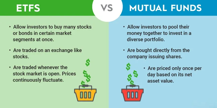 - ETFs (Exchange-Traded Funds) are similar but trade like stocks. They offer the flexibility to buy and sell throughout the day.